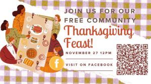 Another Free Thanksgiving Feast for our Community! You're invited! Come hungry for our free community Thanksgiving feast. Meet the other cooks, ...