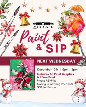 Midweek plans? Now you do! Join us for Paint & Sip and enjoy a complimentary holiday mocktail while you create ...