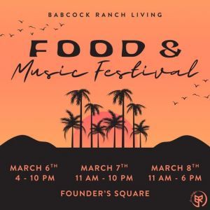 Babcock Ranch Food & Music Festival! March 6th, 2026 | 4 - 10 p.m. | Founder's Square March 7th, 2026 | 11 ...
